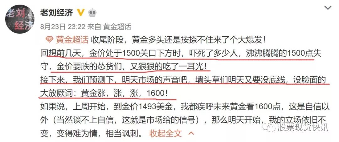 正如老刘本月10日,也就是上周末在文章中提到的,本周的黄金走势先抑后扬,上周五收的十字星不仅不是多空局势反转的信号,确是一个经典且对老师傅来讲也是一个明显的中继信号,当然对于水平有限的朋友来说,却又是个十足的陷...