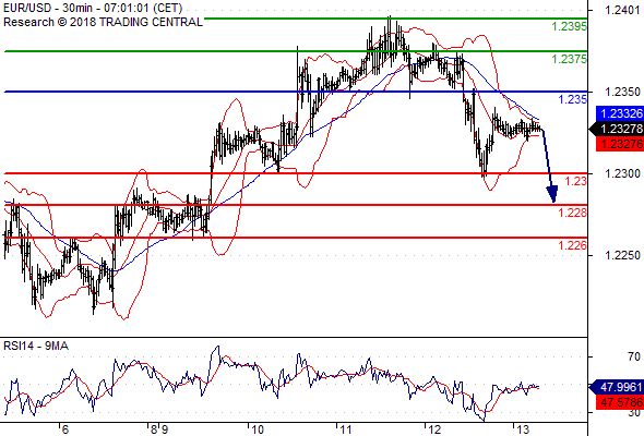 欧元兑美元转折点: 1.2350交易策略:在 1.2350 之下,看跌,目标价位为 1.2300 ,然后为 1.2280 。备选策略:在 1.2350 上,看涨,目标价位定在 1.2375 ,然后为 1.2395。技术点评:只要1.2350阻力位不被突破,向下跌破1.230...