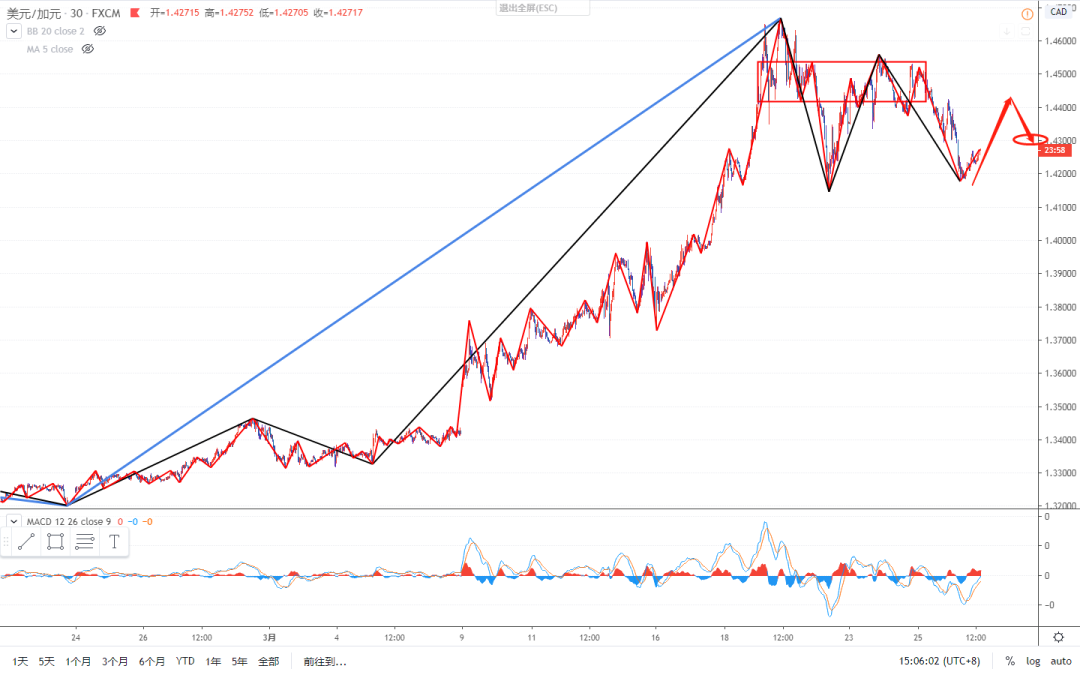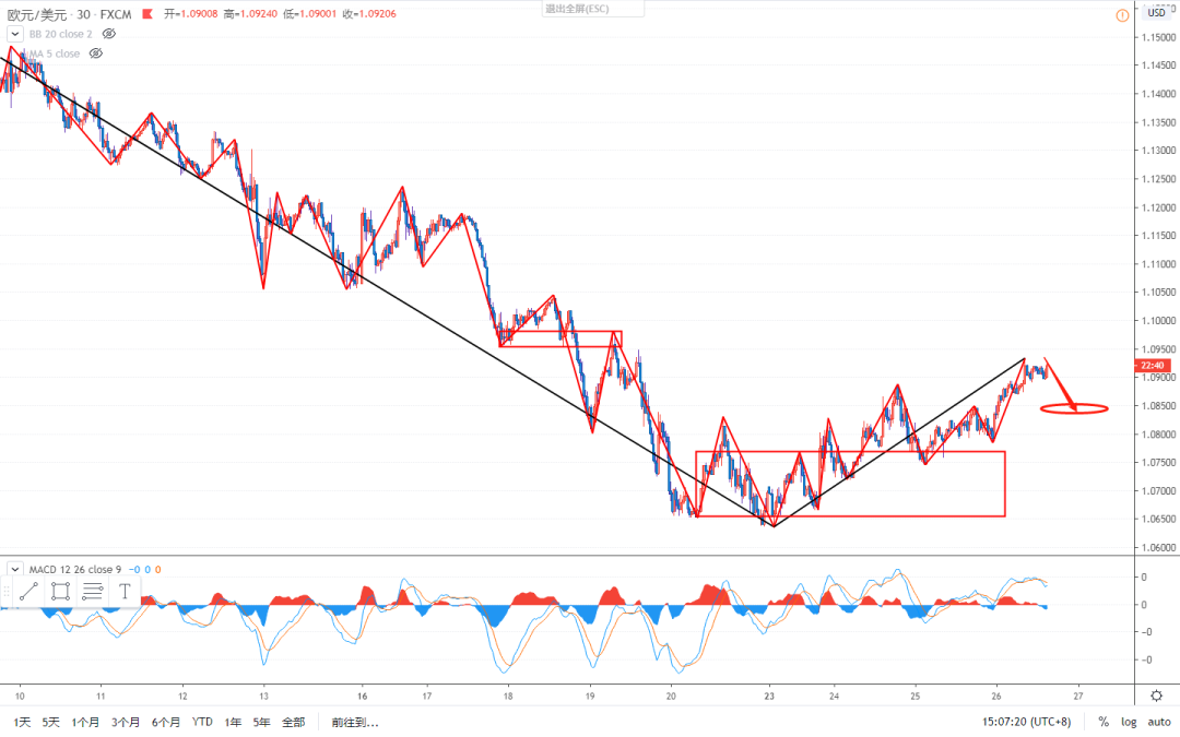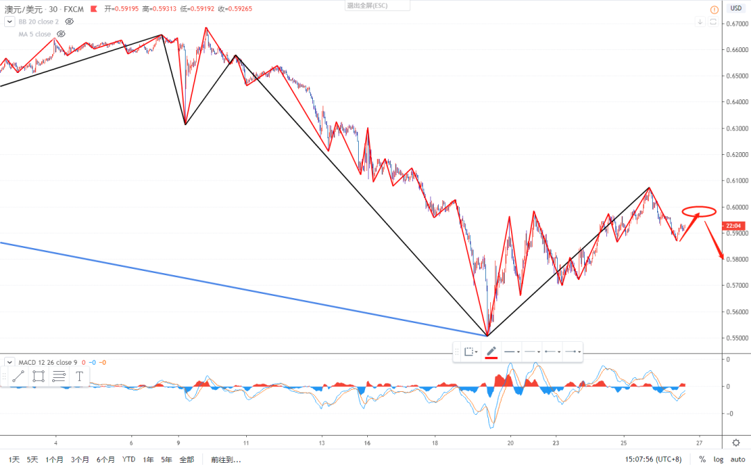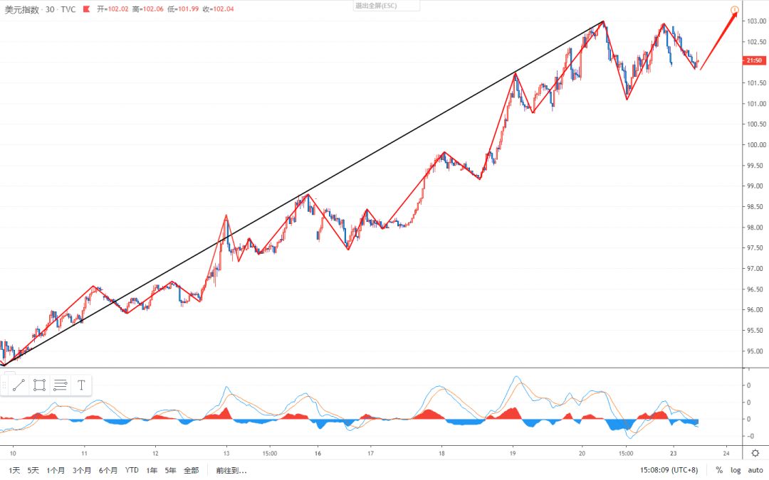 01美元指数 30分钟图美元指数目前在搭一个30分钟级别的上涨中枢,当前30分钟调整已经有结束的迹象,接下来有可能将继续向上延伸。操作方面,美元指数现在的多头趋势完好,所以要继续保持多头的思路,建议在调整结束后继续做...