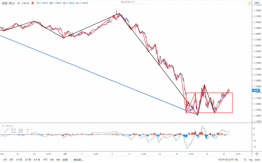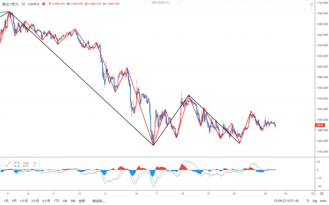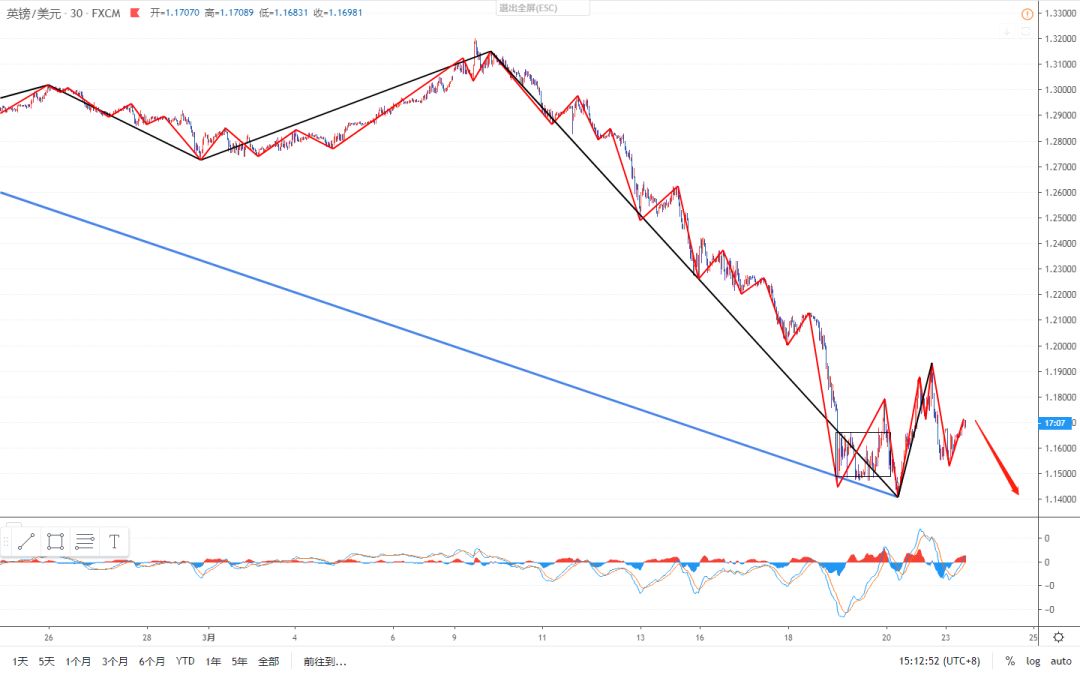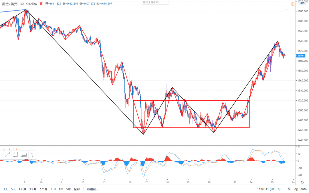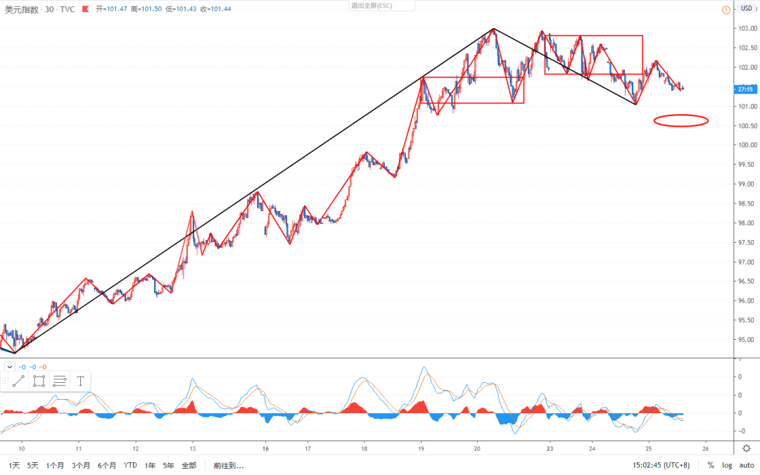 缠论解盘黄金 x 外汇 美元指数30分钟图昨晚美盘时间,大家应该很兴奋,因为行情按我们所分析的那样如约而至。从下跌动能看已经产生衰竭,操作上选择及时止盈部分获...