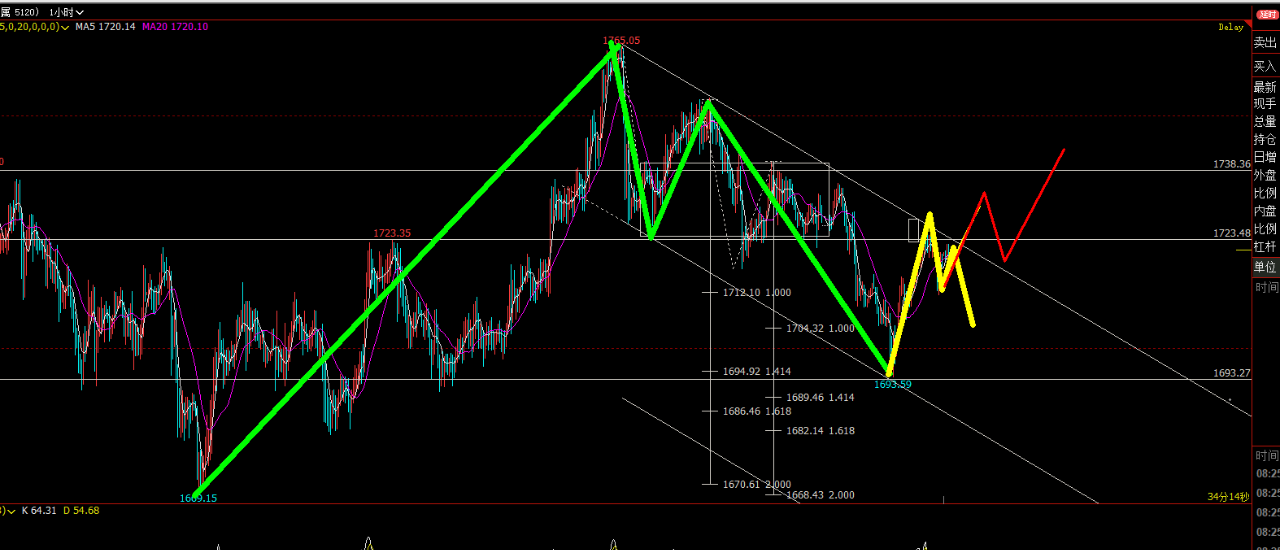 伦敦金:日线级别: 1-2本级别面杠杆,支点:1731.76,1605.08,4-5的1倍是1708.18下方支撑:1731.76-1708.18,1605.08.当下面临支撑起涨,本级别看,很难一次止跌,关注次级别走势关注次级别走势60分钟级别:60分钟: 1参照...