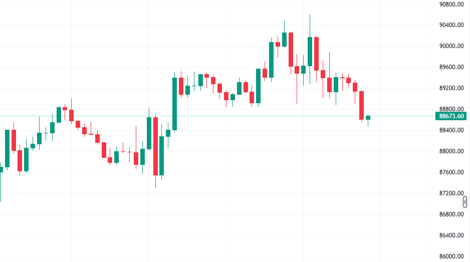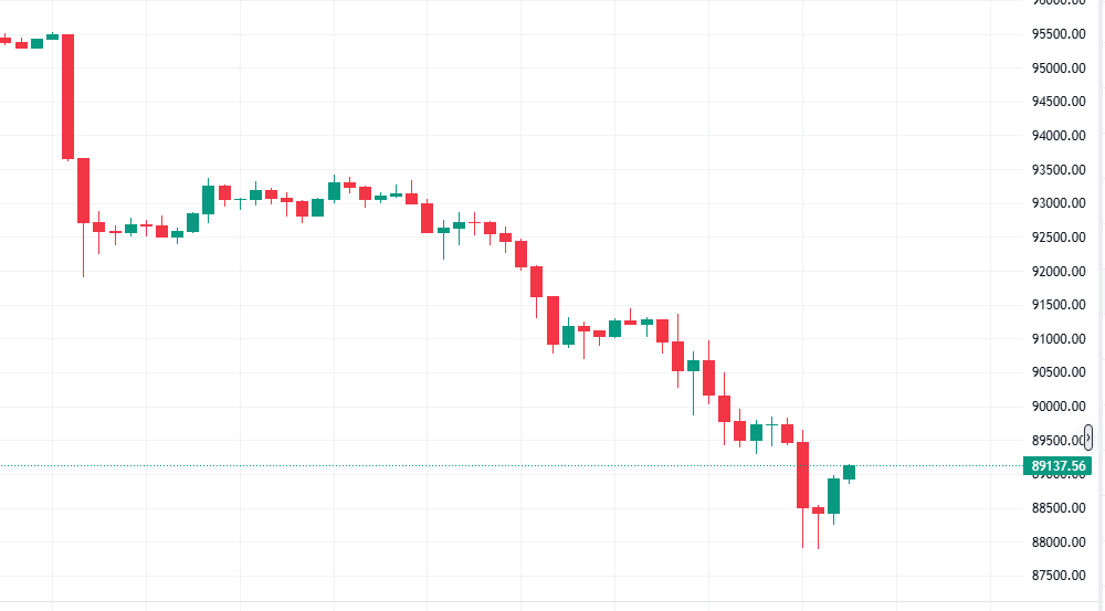 昨天晚上到现在,我一直盯着比特币和以太坊的走势,俩币种走势几乎一模一样,都是先反弹了一下,然后又掉下来了。比特币昨天盘中稍微涨了点,到了昨天晚上最高冲到90500左右,结果没稳住,立马又回落了,现在价格已经跌回89...