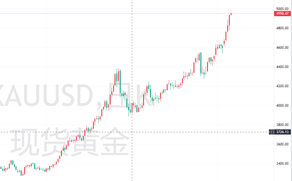 上周五,黄金突破4900大关来到4990,再一次创历史新高。这一突破不仅标志着黄金多头趋势的延续,更折射出全球金融市场对地缘风险、美元信用体系以及央行政策的深刻担忧。共同构成了推动金价后续上涨的完美风暴。但黄金日线级...