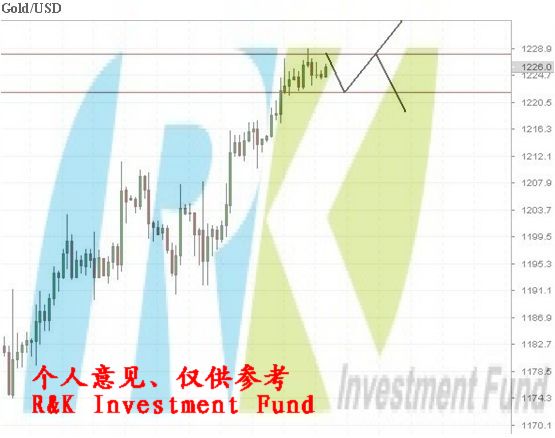 1、市价上探1228不破,激进者可轻仓逢高做空,止损:1231,目标:1225、1222附近,若市价跌破1222支撑水平,则目标延续至1217、1212附近
