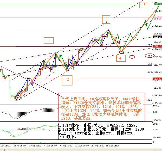 十日均线支撑1218,日线图显示有回归1200附近的可能。压力1234 1237 逢高做空为主。