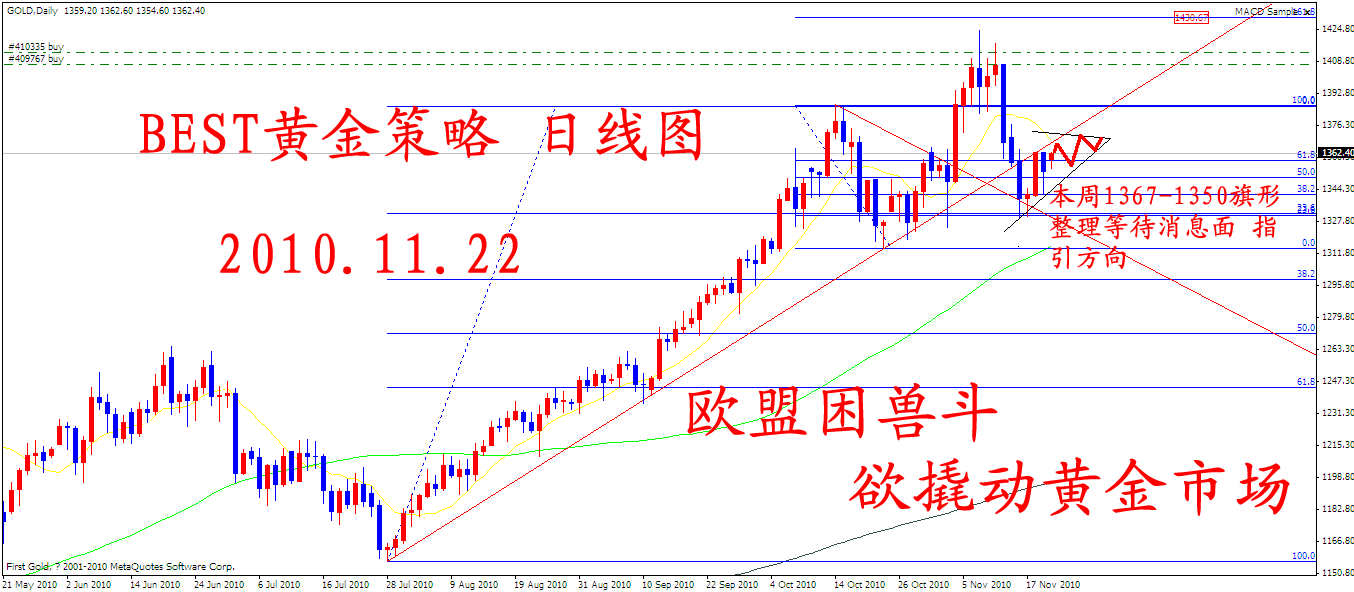 中国央行提高储备金及爱尔兰危机的缓解,暂时缓和了黄金进一步下行的脚步。1350-1367成为今日交易区间,推荐区间交易。具体交易策略请关注会员交易提示。