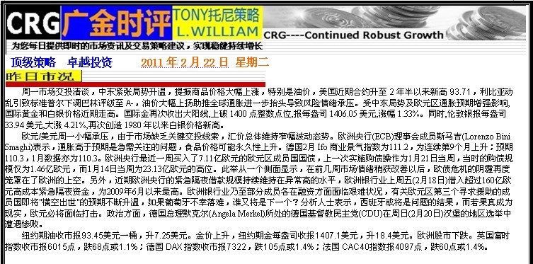 作者/刘柏卿 2011-02-22 07:21 0 来源: FX168财经网人物频道