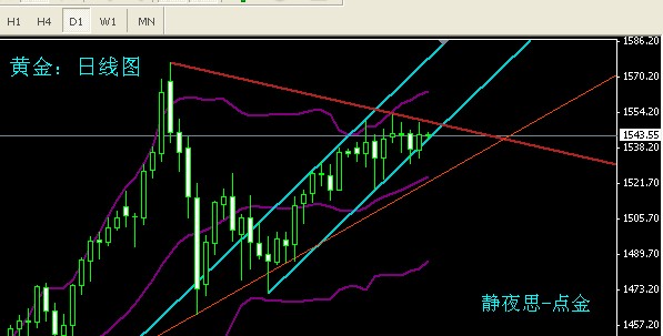 上方又受到1545美元的压力,目前又处于一个小范围的震荡。
