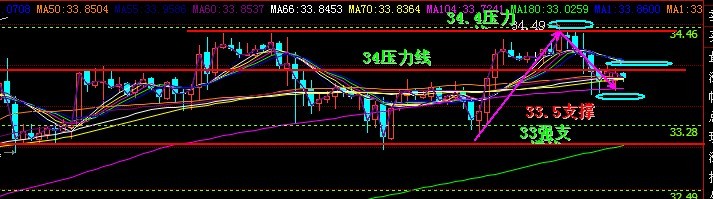 现建议:1#激进型逢高34附近做空,损34.2 看33.5.稳健型观望,在大区间33-34.45区间高抛低吸。