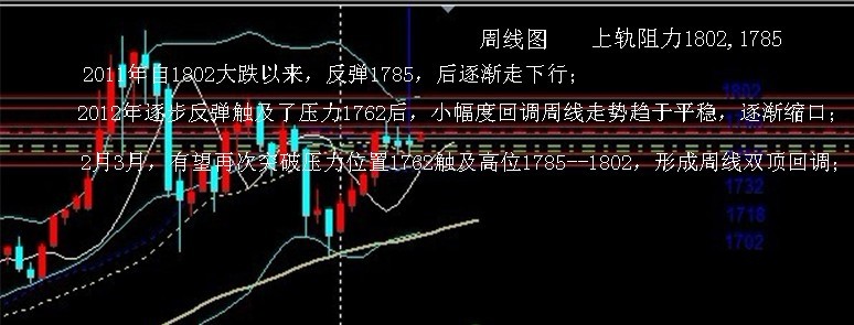 日线存在 双顶 1796 二顶 多单 2月底3月初G20 会议前夕 见回调下方 1742附近 可继续做进多单 目标依然是探2顶 1796--1802 中线