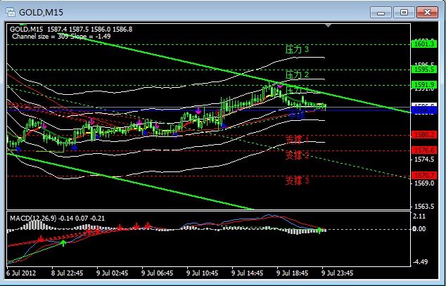 操作策略:当前价格1586.8,转折点1586.0,建议1590做空,目标1586,继续突破1580 1570,午后无法突破1580空头平仓做多,目标1590继续突破目1595 1600。