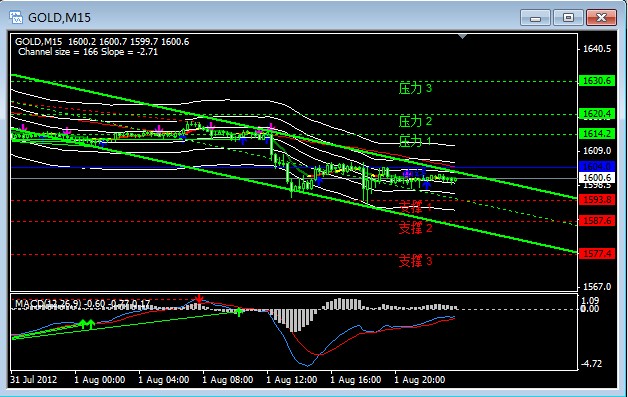 操作策略:当前价格1600.2,转折点1604.0,建议1604做空,目标1593,继续突破1587 1577,午后无法突破1593空头平仓做多,目标1604继续突破目1614 1620。