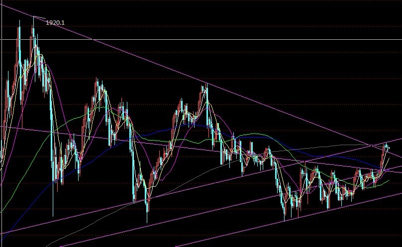 昨日黄金日间维持震荡整理,亚盘下探至1657.6,在4小时BOLL中轨附近得到支撑,也再次确认了突破从历史高点1920下挫后的长期压力线后的回踩。随后逐步震荡走高,最高触及1672.1。在72附近再次受阻后震荡下行。昨日美指大幅受挫走低,一路从81.82一路下探至81.27,。美指的下挫给了欧元反弹的机会。