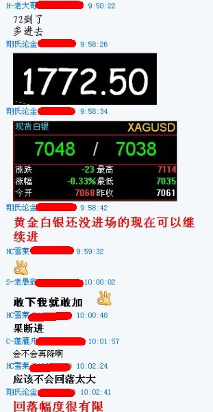 翔氏论金申明: 劲草金银群喊单明确介入点位,明确止损价位,明确目标离场位。即时喊单,即时分析,不做马后炮的行情,虚无的点位,实力见证,请持续关注。