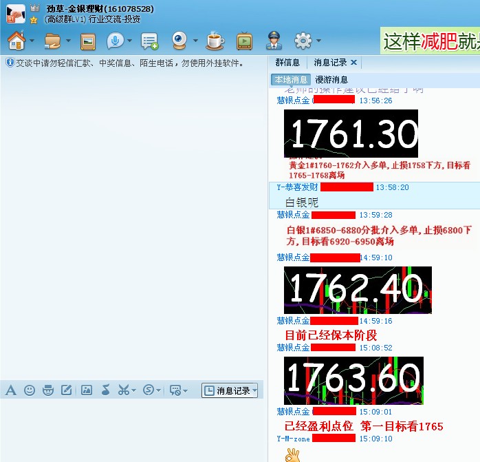 慧银点金申明: 劲草金银群喊单明确介入点位,明确止损价位,明确目标离场位。即时喊单,即时分析,不做马后炮的行情,虚无的点位,实力见证,请持续关注