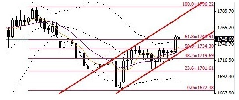 黄金上周周线收出长阳,日线经历一周震荡蓄势,在周五晚间形成上破,力拔千钧力有未尽,本周初或将延续升势。操作上以逢低做多为主,今日回落 1745-1747 附近可多,跌破 1743 离场,上看 1753,1762,1772 。