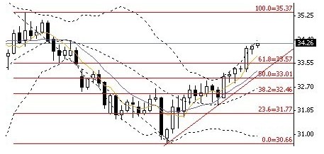 白银上周周线收出长阳,在上周五晚间形成上破,力拔千钧力尤未尽,本周初或将延续升势,昨日震荡走高收出小阳线。今日操作上以逢低做多为主,今日回落33.9-34(7000-7025)附近可多,跌破33.8(6980)离场,上看34.3,34.5,34.7(7080,7125,7165)附近。