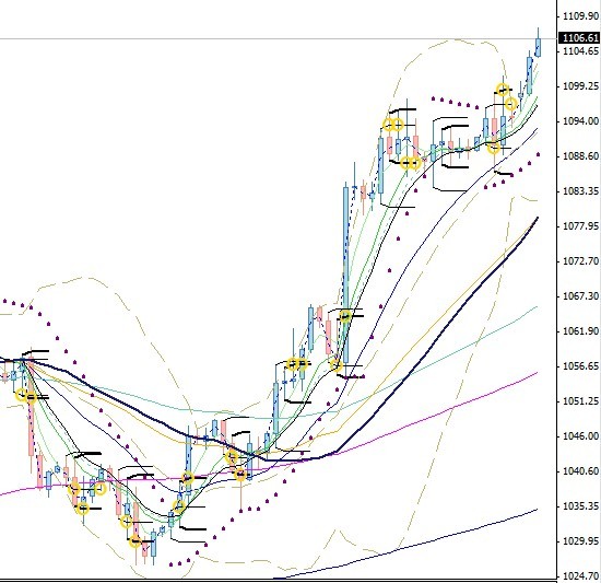 黄金技术图方面,美元悉数回吐涨幅并加急跌势,使黄金等高风险投资商品价格水涨船高,金价亦再创出历史高位,但上方能参考的价位已不多,所以投资者应多参考其他的货币来判断主要走势,其中美指走势可以作为主要考虑要素;现时黄金上方初级阻力在1110,更强的阻力则在1118,下方初级支持在1100,更强的支持则在1095以及1085;今日操作策略可以区间买卖为主,金价如回调至1095美元可做多,目标1110美元或以上,止损于1090美元或以上;入场价位及目标价位需视乎技术指如标及当时市况配合,此处不能详尽说明,还望见谅。