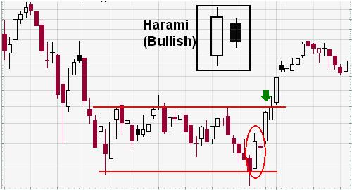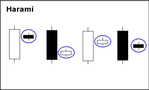 孕妇图形的二烛虽然可以有4种组合,但是阳/阴和阳/阳组合的牛势更强一些。它们出现的机率也比较高。在一次下降走势后出现的阴/阴和阴/阳孕妇图形也可以被看作是牛势,但没有前者强烈。