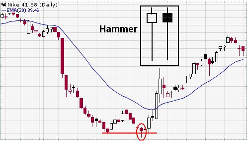 在一个下降走势后,锤子较长的下阴影表示卖盘的力量还存在,但是强有力的收盘价表示买盘在后来又主控了市场。锤子需要更多的升力来确认逆转。倒置锤子的作用和锤子是一样的。