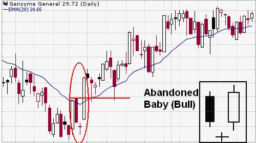 弃婴和十字晨星的不同处在于第三烛是向上跳空的。第一烛和第二烛之间的跳空表示卖盘压力仍然强大,但是第二烛的收盘价和开盘价一样成为十字星,表示压力已经减弱了。到第三烛向上跳空并且成为长身阳烛证明了走势已经上升了。而且不需要其它的信号来确认。