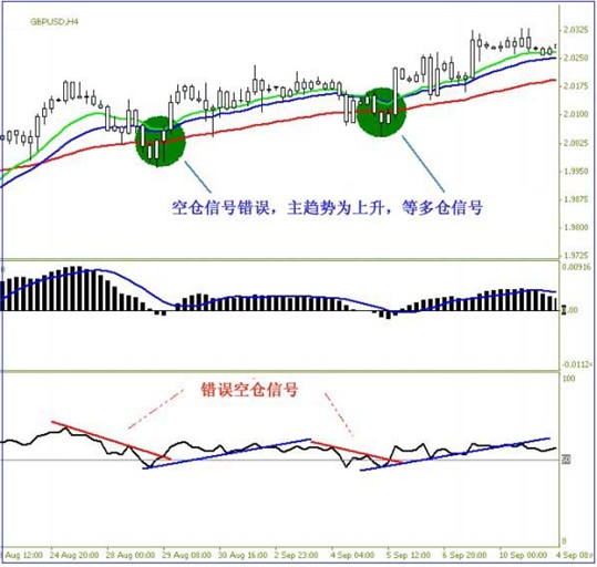 4.虽然有时MACD的信号线会提前出现可交易信号,但一定等第二条直柱出现在相同的方向后才进行交易。