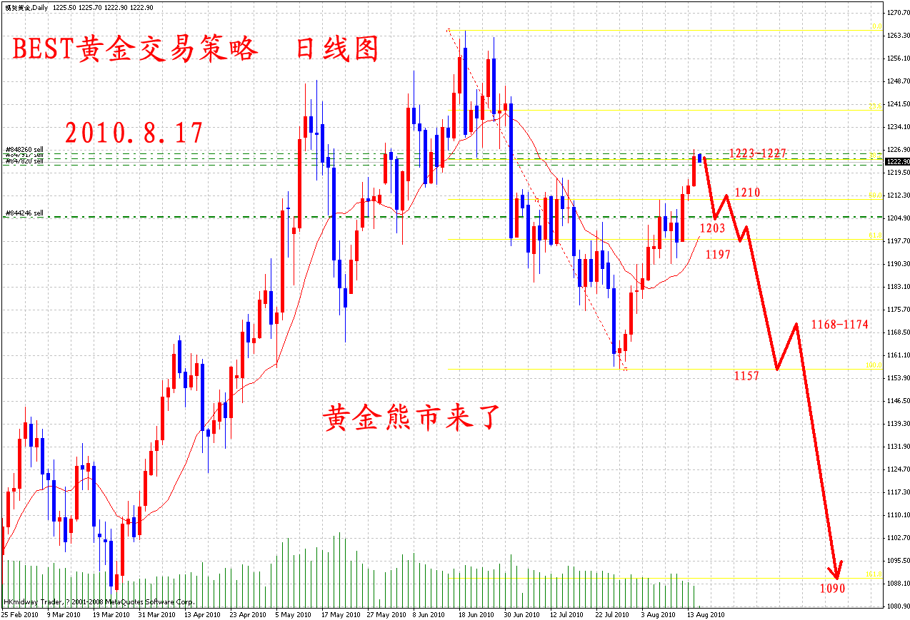 我们继续持有1222-1223的空单作为趋势单,目前行情看短期内还将可能在这一位置进行震荡。即使行情上冲1240,1247;投资者也不必过于慌张,在没有重大消息的刺激下黄金三个交易日内还是会回归1220附近的。维持周期性趋势下跌。