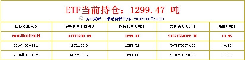 消息面上:昨日晚间最新公布的经济数据表明上周首次申请失业救济人数升至9个月新高(截至8月14日当周的首次申请失业救济人数增加了1.2万,总数攀升至50万,为连续第三周增加,并创造了2009年11月14日以来的最高值)、费城联储8月制造业指数意外下滑、美国7月领先经济指标指数不及预期,令投资者担心美国经济可能长期低迷,美股大跌美元在再次跌至82.00一线受支撑后反弹。另外值得注意的是,世界最大的黄金上市交易基金(ETF)-SPDR Gold Trust8月20日的数据显示,其持金量在1299.47吨,即在前2日增仓8.82吨之后昨日又继续增持3.95吨,ETF增持改善了投资者对于黄金市场的信心。