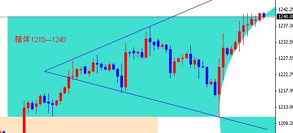 昨日在黄金几次试探1240未能站稳,日线回调点0.764的阻力明显,目前k线形态处于弧形上涨,macd四小时线出现顶背离,个人认为,黄金上涨疲惫,如果想继续保持上涨势头,需要回调蓄势,上方关注k线三角形延长线(附图)47的阻力,下方关注1232,1228的阻力