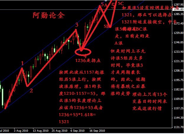 日线图分析,日线自1045-1145的涨幅100美金,自1085-1265的涨幅为180美金,那么从1157-1296的涨幅目前已达140美金,如果我们把自1157的上涨作为第5浪的上行来看的话,那么涨幅应该小于180美金,即奔波高点理论上小于1337,结合周线来看本周是自1045上涨以来的第34周,即处于涨势末端时期,变盘的可能性会很大,加上周线背离形态愈加严重,金价次轮上涨上方还有多大空间,阿勋在这里也不做预测,至于短期的强势上行,阿勋认为消息面刺激的可能性很大,此刻的行情存在种种不确定性,近期黄金的节奏都是亚欧盘慢涨,美盘回调整理,偶尔来点消息面刺激一下。故今日我们仍然要防备金价延续上行,然而美盘我们应当放弃做多,以防止获利盘的打压,毕竟这样的整理终究会让某些人麻木,狼来了的故事我们都听说过,此轮暴涨如果近期没有一波50美金左右的回调而继续上扬的话,后市必将有一波暴跌,而且幅度很大,但是目前在没有见顶信号之前,一切还是未知之数。详细分析见图。