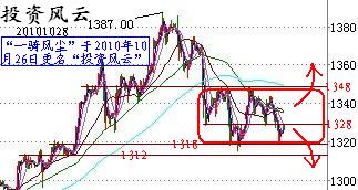 金价上行通道强阻力1348--1352,上行跳板1332--1335;金价下行通道强支撑1318(今日盘面金价若在没有上行突破1328--1332的情况下回踩1318,次位置将无力担当强支撑大任),下行缓冲位1312,下行强支撑1298。