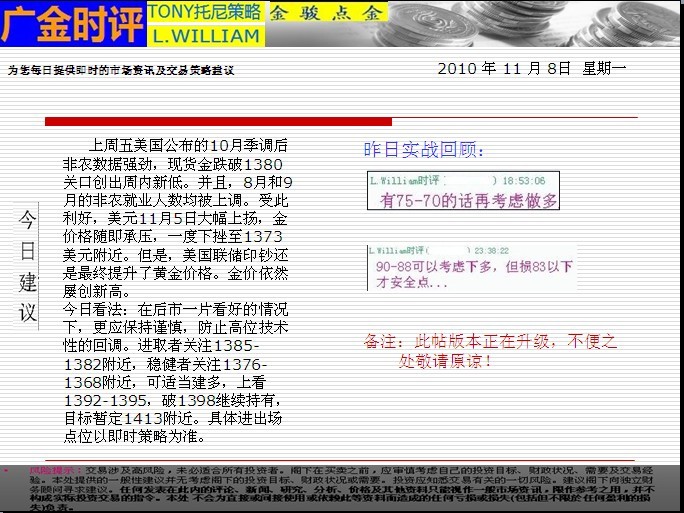 作者/广金时评 2010-11-08 02:57 0 来源: FX168财经网人物频道