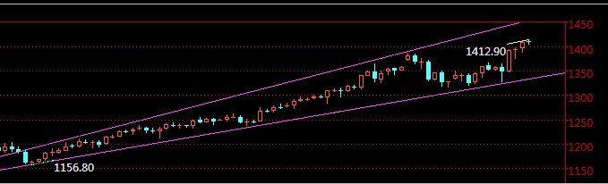 早盘可能会在1403-1413之间震荡,逢低做多。