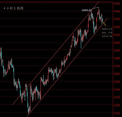 周二黄金开1431.8,最低1423.1,最高1436.5,收于1428.4,日线收一小阴线。