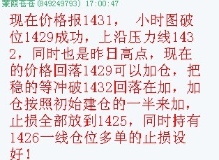 2:价格今日如果回落1432到1434区域,日交易可以建多单,止1428,目标1440,1448