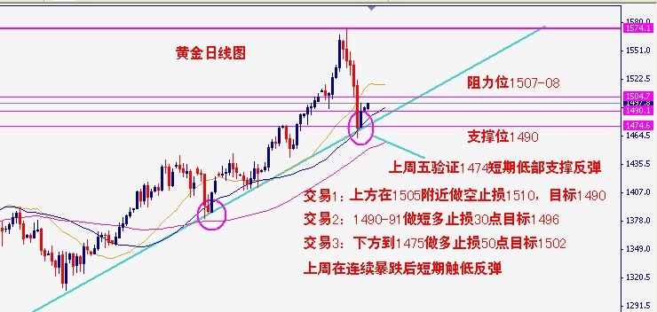 就算黄金还会继续下探,也不大可能会在今日跌破1474该位。从上周五的非农数据来看是利好美元,美指大幅飙升,然而贵金属市场只小幅下探1474回升并在今日站上了1490上方。有此可见短暂的恐慌并没有带来投资者对贵金属失去信心。买盘坚定不移。而这次的暴跌和金融家们在短期内把黄金炒的太高,超出黄金正常范围的升值。并加之大部分的投机家们的获利了解,和以上的二个方面大力做空黄金所走出目前这样的行情。