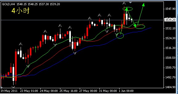 昨日回顾:昨日最高价1550.25,最低价1529.4,波动约21美金,形成影线比较长的阳柱。当前4小时布林有收口的现象,1小时未跌破布林中轨,从KD看,4小时虽然有死叉的迹象,但是比较微弱。从总的趋势上看多头依然略占上风。