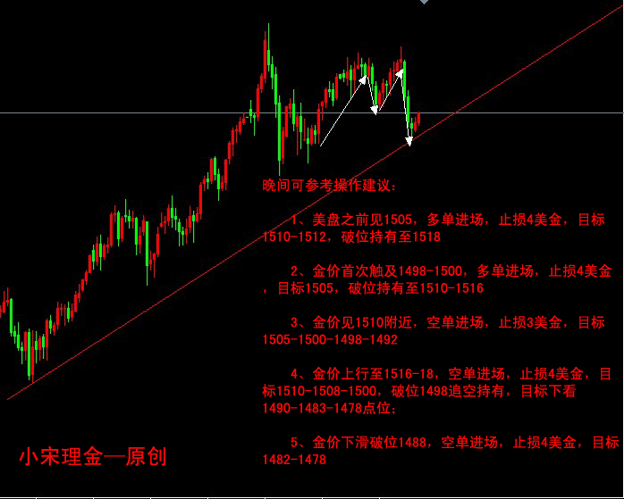 技术剖析:日K线上,BOLL开口下滑,5、10均线死叉下滑,5日均线击穿60均线继续延伸下滑,MACD死叉下滑,指标偏弱,Stoch处于超买区粘合,Rsi于30水平位上方上扬发散;四小时K线上,BOLL开始缩口,5、10均线交叉上行,MACD于0轴下方交叉金叉回调,指标弱势,Stoch处于超卖区振幅;晚间上方关注阻力位1510、1516-1518;下方关注支撑位1500、1490