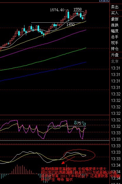 *作建议分2部 第一思路 做目前环境的走势 即 价格出现一个小新高或者价格在前期高点附近 做空开始 目标1545附近 见1545分批做多 下方的堡垒在日线26 55日均线的位置 即1525跌破止损 目标新高 第二思路 就是继续45度直线上涨 那么就是观望 停止*作(次概率超低)