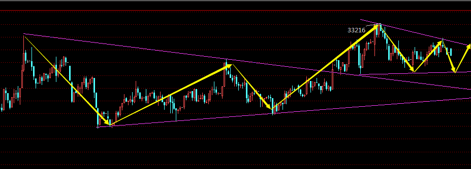 2.33000-33200分批做空,止损33500.目标32600-32400