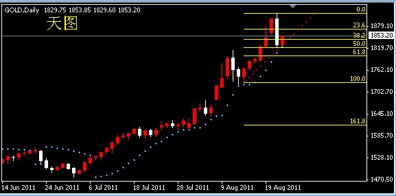 昨日回顾:昨日最高价1912,最低价1823.5,波幅88.5美金,形成一大阴柱。天图上形成看跌吞没,但是这个看跌吞没区间太大,并且刚好打到斐波那契50%位子,今日反弹的可能性较大。如果今日继续下跌昨日的低点,将还会继续大跌。所以今天是很重要的一天,直接影响后面几天的走势。