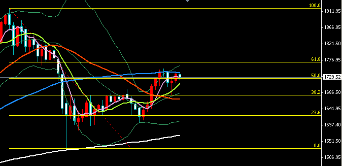 支撑位:1720—1710—1700 压力为:1733—1745—1755