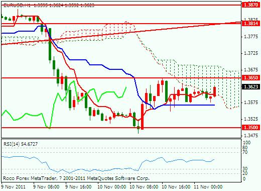欧元兑美元上一交易日收出一根中阳线,带有较长下影线,显示空方一度力量强劲向下打压,今日早盘小幅上涨。1小时图中,欧元兑美元昨日总体延续低位震荡格局,盘中曾一度跌破1.3500,但之后受到欧洲央行购买意大利公债消息提振,欧元兑美元快速反弹,向上试探1.3650一线,今日早盘仍进行震荡整理。密切关注短期阻力位1.3650一线以及短期支撑位1.3500一线。