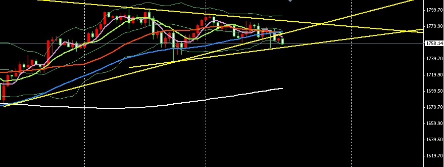 支撑位:1750—1745—1735 压力为:1765—1770—1775