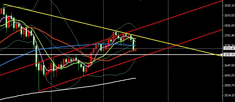 支撑位:1705—1695—1688 压力为:1733—1743—1753