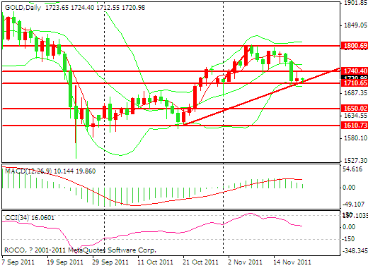 此前,市场普遍预计金价在年底会突破2000美元/盎司的大关,但是,近期黄金走势疲软,按照目前的市状,除非发生重大风险事件,否则黄金在年底很难有大作为。不过,从中长期来看,各国央行特别是新兴市场国家央行依然在大举买入黄金,中国黄金实物需求也保持强劲增长,加上欧美国家为提升经济有可能大举印钞引发新一轮通胀,黄金价格进一步上涨的势头并没有改变。对于投资者来说,建议合理规划黄金在投资库中的比例,逢低分批买入黄金,以达到规避风险、保值增值的目的。周四,黄金大跌2.91%,为两个月以来的单日最大跌幅,从上周全周来看,黄金跌幅在3.5%左右,也是9月末以来的最大单周跌幅。上周黄金大跌的主要原因,是欧债危机加重,导致投资者人心涣散。西班牙政府融资成本攀升至纪录高点是本次市场恐慌性抛盘的导火线。隔夜,西班牙拍卖35.63亿欧元10年期国债,最高收益率突破7%,平均收益率创14年最高水平。同时,法国、西班牙、比利时和意大利的主权债务信用违约掉期(CDS)费率均升至纪录高点。市场普遍担忧欧债危机将从欧元区边缘国家如希腊、爱尔兰等,向核心经济体如意大利、法国蔓延,投资者情绪紧张。很多投资者选择从金市获利了结以弥补其他资产的损失。此外,由于上周美元指数连续上扬,使得部分资金从黄金市场撤离购入美元,对冲基金多头平仓加速了金价的跌势,欧债危机阴霾不散,引发投资者抛售较高风险资产。但是,出于流动性的考虑,这些资金并没有流向黄金市场,而是选择了债券品种或者现金。从黄金的近期走势来看,黄金短期仍有压力。因为在通胀并不明显的情况下,欧债危机短期内导致的金融市场动荡,黄金价格走势与美元的联系越来越紧密。而短期内投资者避险偏好美元,所以,预计黄金将因为美元的强劲而继续承压。