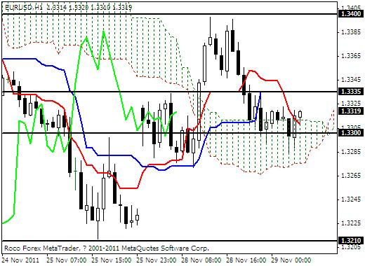 欧元兑美元上一交易日小幅收阴,带有较长上影线,显示昨日盘中多方一度向上发力。今日亚洲时段早盘小幅上涨。1小时图中,欧元兑美元由于受到IMF救助意大利的传言而出现大幅跳涨,但随后IMF证实此消息为假,昨日欧洲时段受德法两国商讨加快财政整合的消息影响,欧元兑美元快速向上拉升,一度触及1.3400一线,受此一线阻力压制而回落,在1.3300一线受到支撑。若今日盘中1.3300一线失守,那么向下看到前期低点1.3310附近。若站稳1.3300,日内仍有可能再次试探1.3400一线。