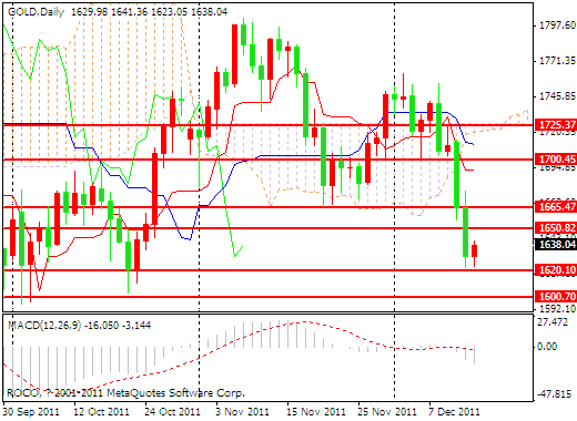 继周二金价突破1650的阻力,打开中期下行通道之后,空方借助基本面的利空消息,趁势乘胜追击,突破重重阻力,最低下探1622.49美元/盎司。从黄金目前的基本面来说,依旧属于多空交织局面。一方面,市场先前预期美联储将进一步实行量化宽松的政策,随着美联储昨日的议息会议而落空;另外一方面,标普昨日再次出来捣乱,称将有更多的主权和银行面临下调风险,加剧了市场对欧债危机的担忧。此外,昨日希腊的CDS攀升至1万点,也就是说购买债券的保险费用已经超过债券本身的价值。而欧元区的疲弱不堪更有助于反衬美国经济的好转,美元指数也因此受益突破79.84的中期高点,站上80大关。若美元持续上涨,金价将会进一步承压,鉴于目前黄金的走势,既然下行通道打开,将继续有下探行为,但是空间不会太大。