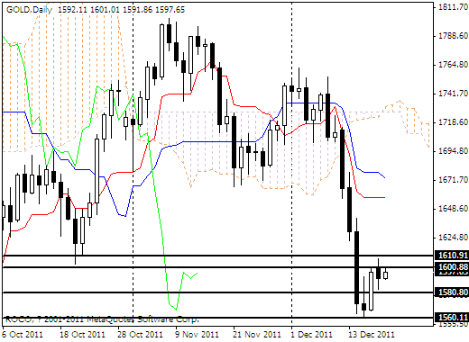 现货黄金周一收盘微幅下跌,恢复之前的下行之势。朝鲜最高领导人金正日逝世的消息使得欧债危机笼罩之下已然充斥着风险厌恶情绪的市场变得更加谨慎。随着圣诞及年末假期的临近,多数投资者均切换至离场观望模式。欧盟统计局周一公布的数据显示,欧元区10月建筑业产出下滑,再度暗示持续不散的欧债危机正对经济构成严重拖累。西班牙央行(周一)公布的统计数据显示,受房地产市场崩盘和欧债危机的影响,10月份西班牙银行业坏账增多,而存贷款规模均有所下降。欧洲央行行长德拉基周一表示,金融市场紧张局势加剧继续拖累欧元区经济活动,预计欧元区经济在2012年非常缓慢地复苏。油价小幅上涨市场关注欧洲消息。原油期货周一走高,从六周低位小幅回升。交易员们关注欧洲传来的消息,以期找到该地区在应对债务危机上取得进展的迹象。