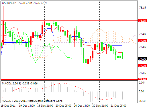技术分析:美元兑日元近期保持震荡的态势,整体的价格始终难以逾越78.05和77.60的区间,在今天日内下幅度下跌,目前77.90和77.70成为了日内的阻力位和支撑位,请大家关注这两线位置。